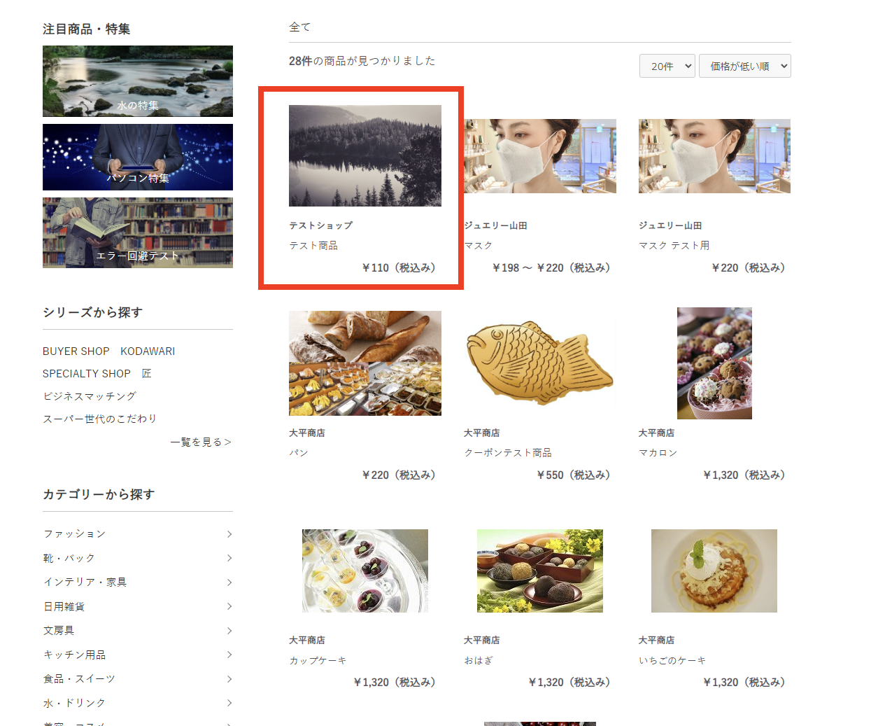 - トップページ左側から、カテゴリを絞り込んでして、商品をご覧いただけます。