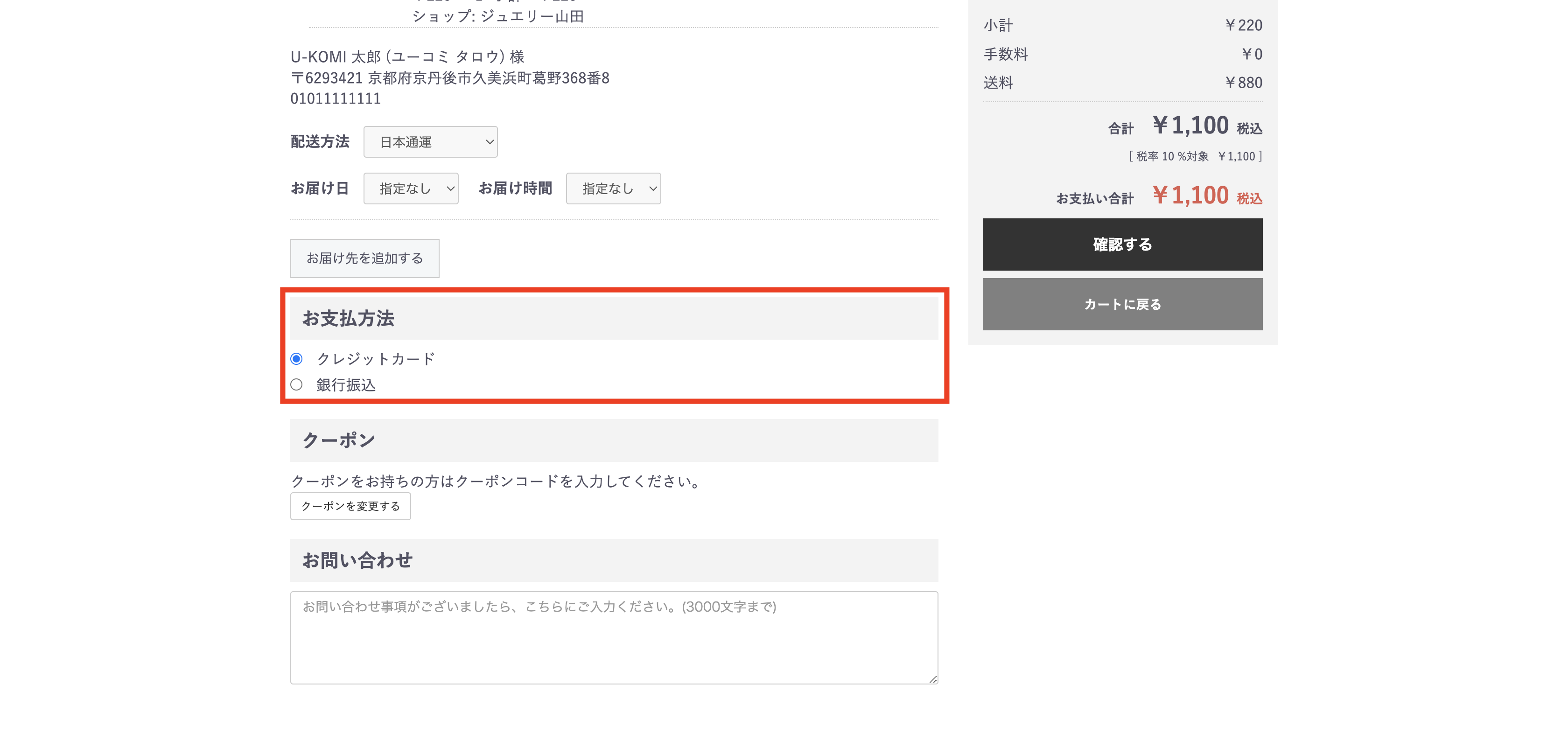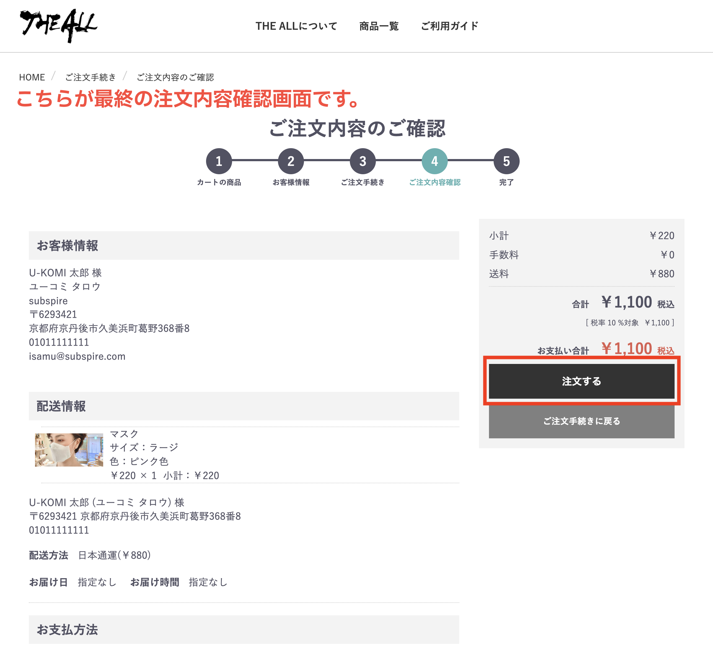 注文内容をご確認の上「注文する」ボタンをクリックしてください。 変更点がある場合は、それぞれの「ご注文手続きに戻る」ボタンをクリックしてください。
